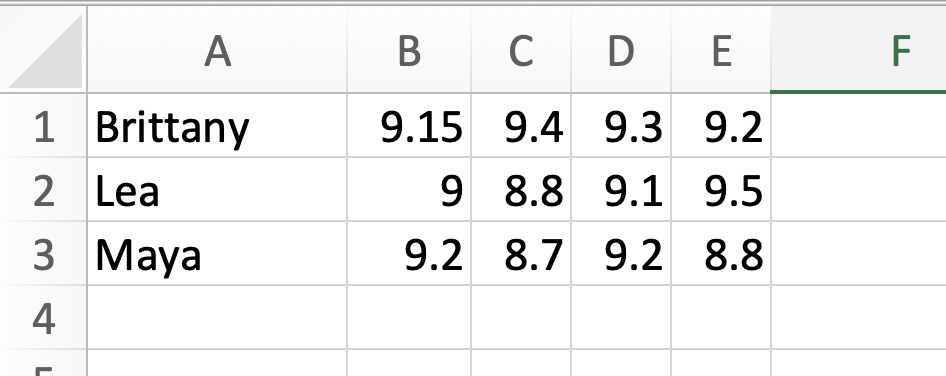 Brittany, 9.15, 9.4, 9.3, 9.2