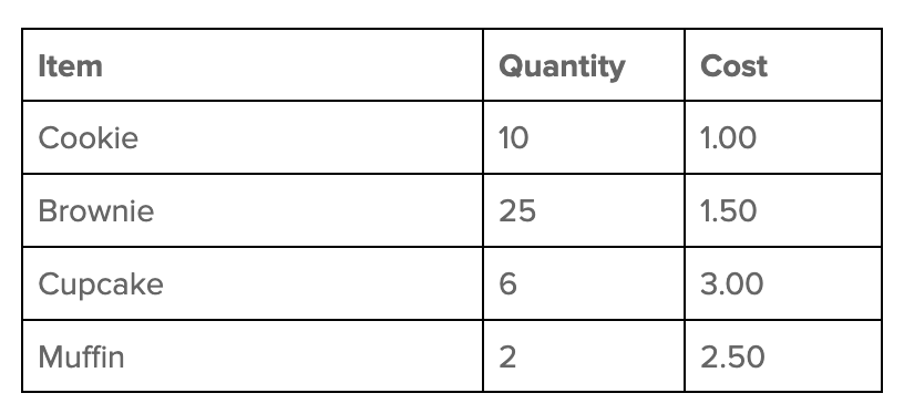 Tuples are enclosed in parentheses (9.99, 7.99, 3.99)
